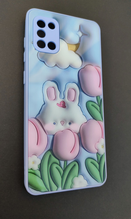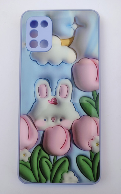 کاور عروسکی فانتزی برای Samsung A31 با طرح خرگوش، پسزمینه آبی، محافظ لنز و چاپ ثابت — مقاوم و دخترانه.
