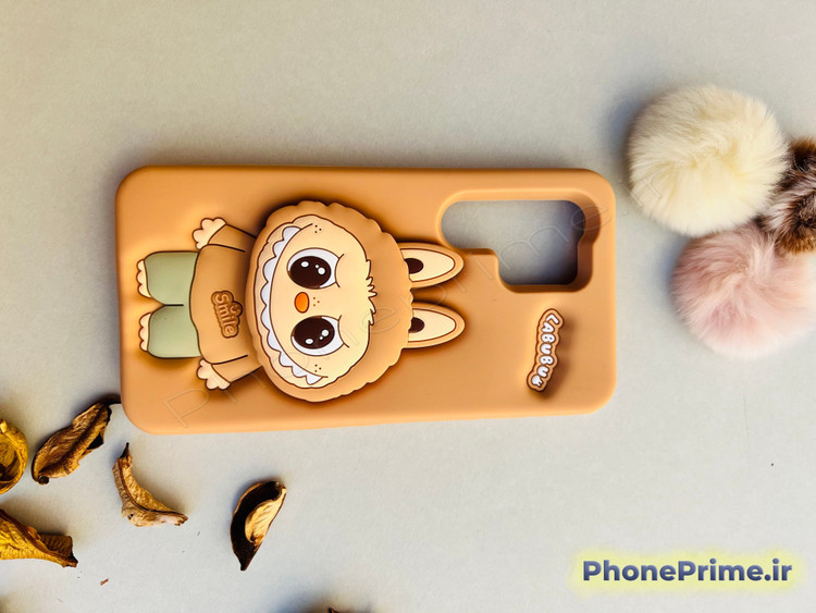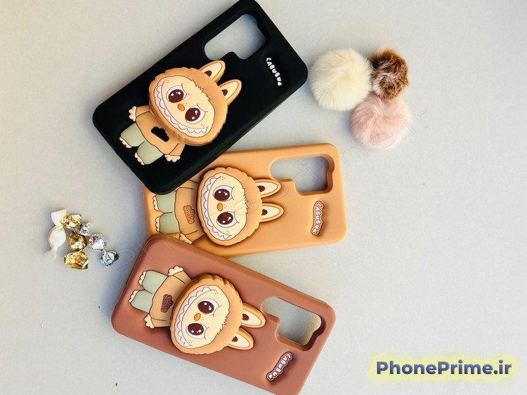 کاور لبوبو سامسونگ S23 Ultra | قاب دخترانه لاکچری labubu با چاپ برجسته + محافظ لنز و ضربهگیر – رنگ کرم، قهوهای، مشکی
