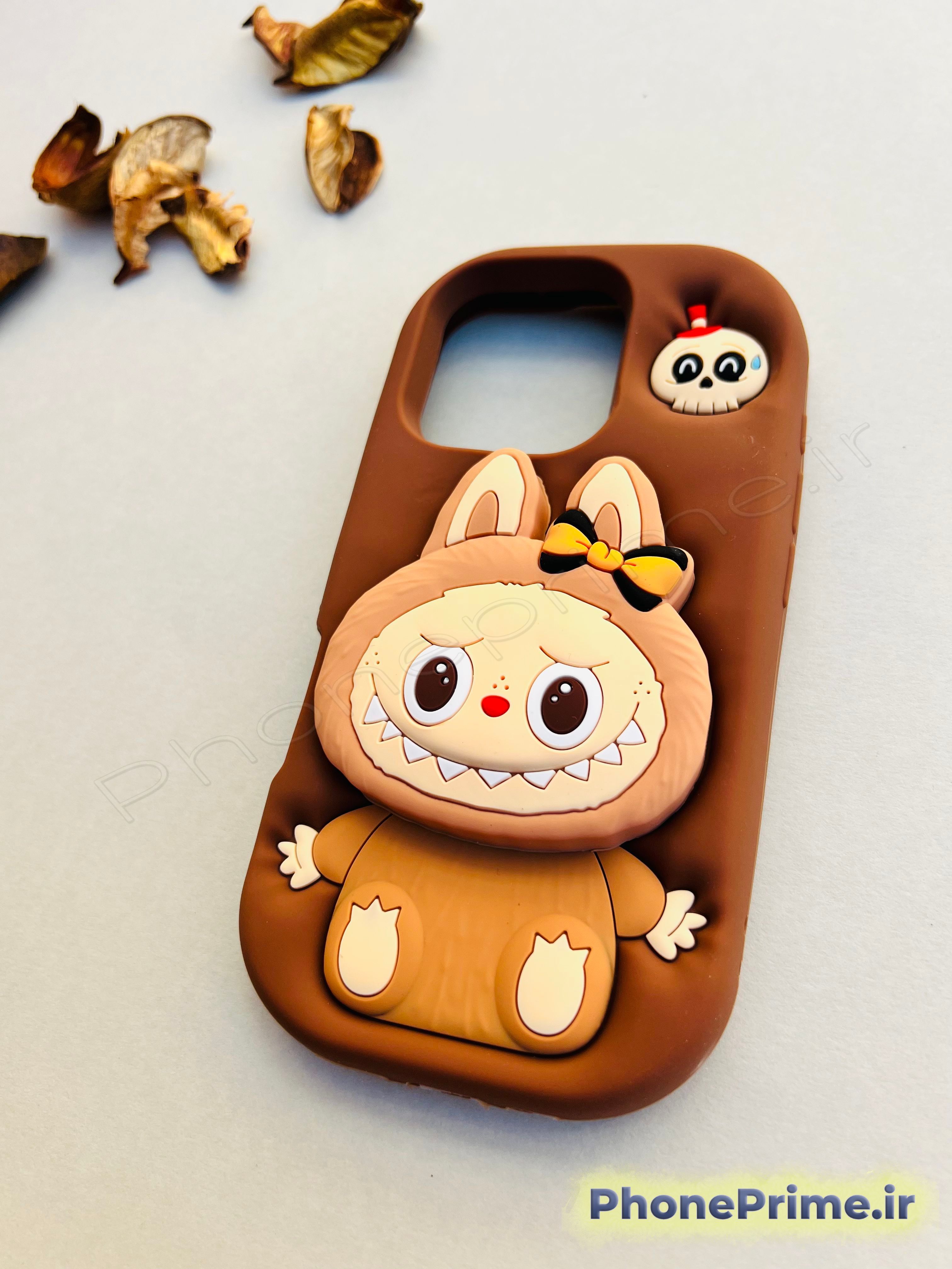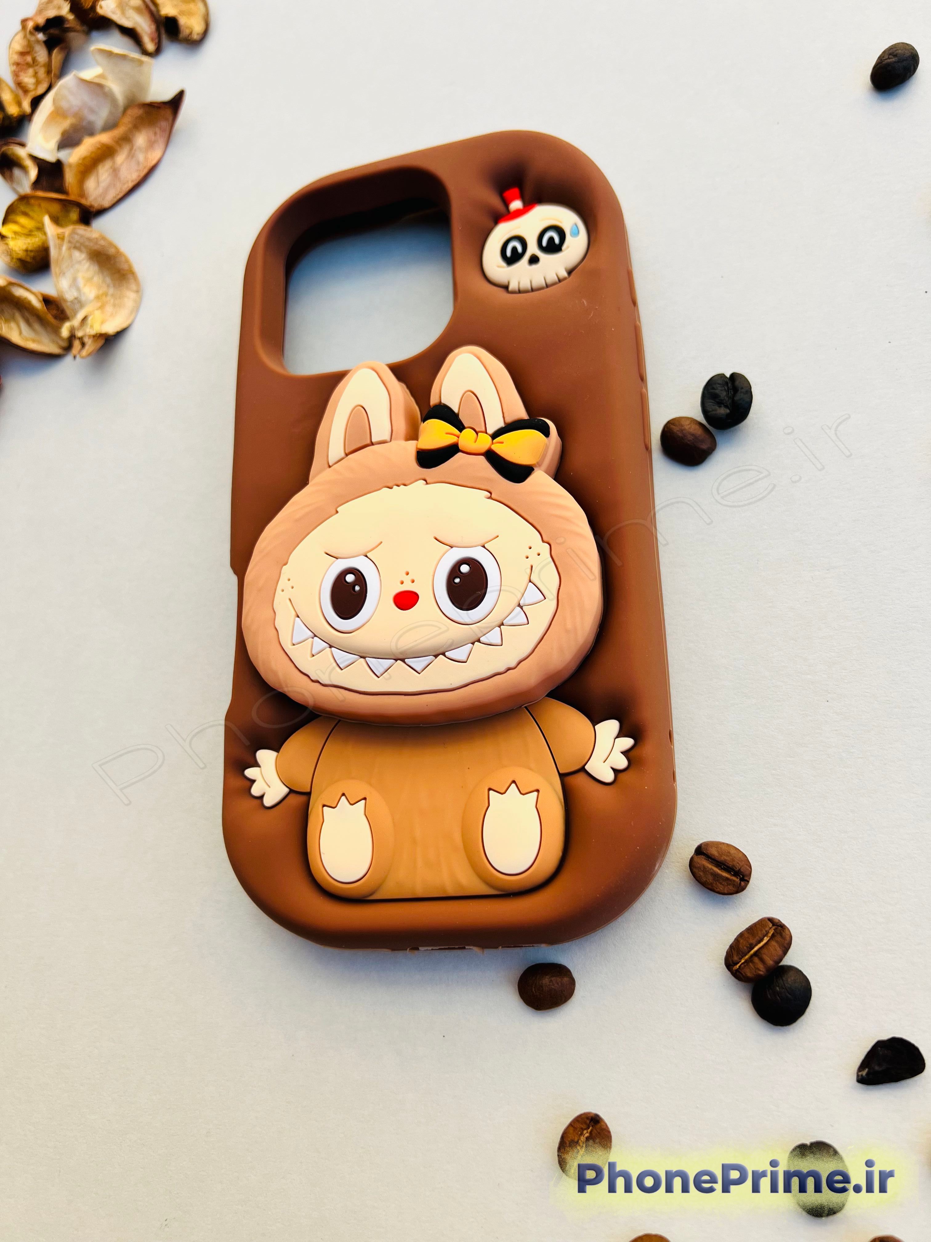 خرید قاب آیفون 16 پرو مدل Labubu عروسکی فانتزی | کاور ضدضربه پشت مات با گارد لنز تقویتشده – طرح لا بوبو اورجینال در رنگ قهوهای