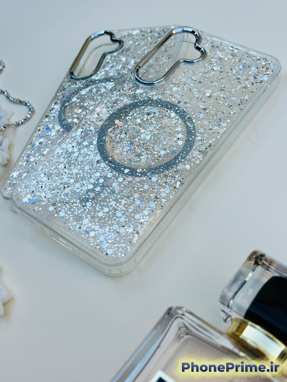 کاور اکلیلی شفاف سامسونگ S24 FE مناسب کسانی است که گوشیشان باید هم خوشگل باشد هم کاملاً محافظت شود. بدنه شفاف ضدخش در کنار اکلیلهای نقرهای فوقدرخشان و پولکهای شاین جلوهای لوکس ایجاد میکنند که زیر نور واقعاً میدرخشد.