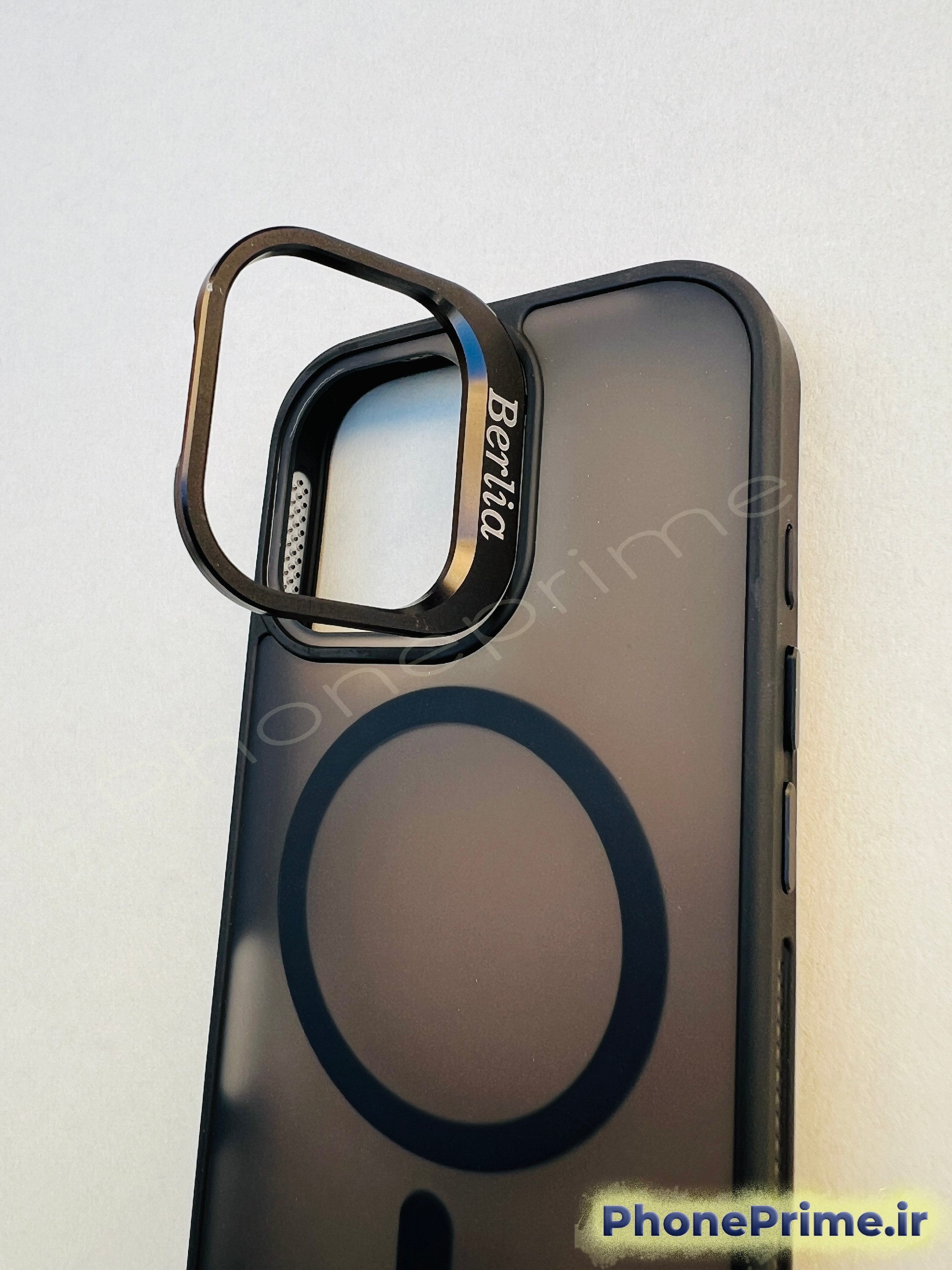 کاور مات مشکی آیفون 16 | فریم تیتانیومی اصل + استندشو | محافظ لنز اضافه | فوق مقاوم و فوق لوکس