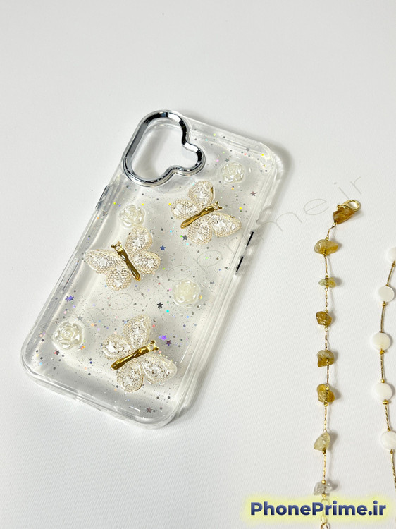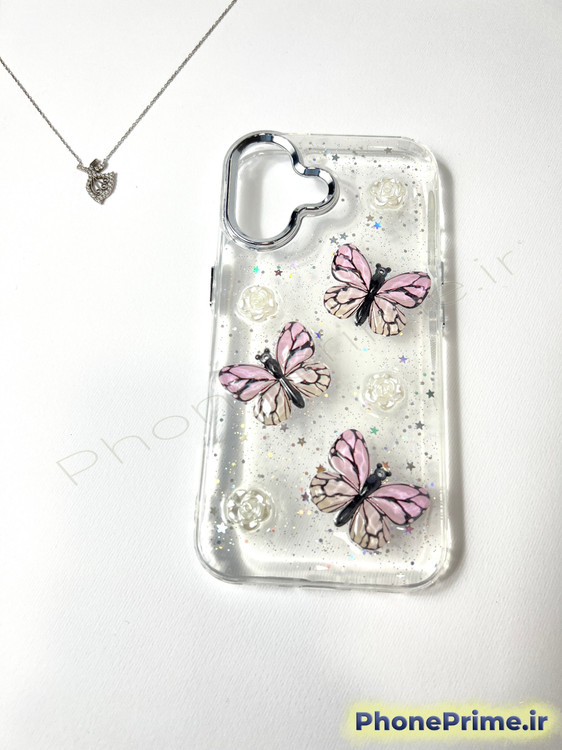 طراحی پروانههای برجسته 3D در کنار جلوه شاین براق و ظریف، نمایی لوکس و خاص به Galaxy A06 میدهد، بدون اینکه رنگ یا طراحی اصلی گوشی پوشانده شود. شفافیت قاب باعث میشود گوشی همیشه نو و تمیز دیده شود.