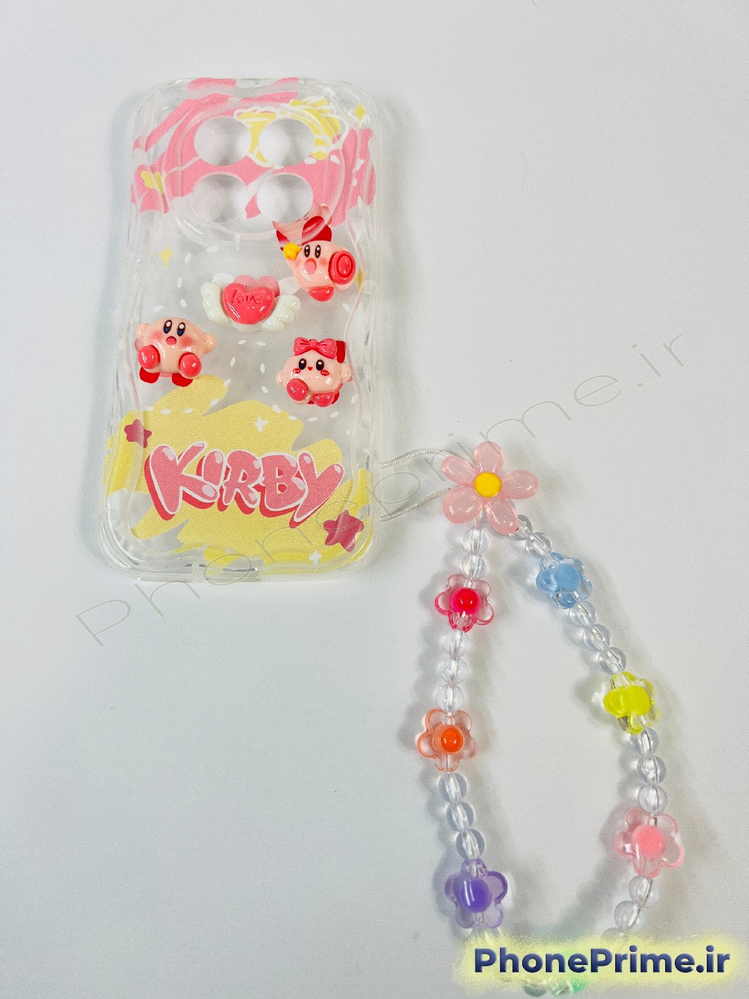 قاب شفاف فانتزی دخترانه Kirby برجسته 3D سامسونگ A55 | کاور آویزدار خاص و چشمنواز