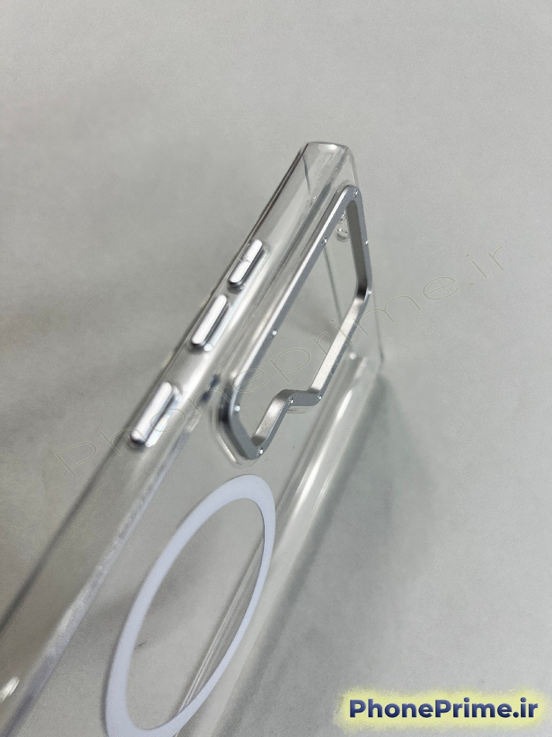 شفافیت کریستالی و فریم تیتانیومی: پنل پشتی این قاب از مواد پلیکربنات سخت ساخته شده که کاملاً شفاف است و به هیچ عنوان تغییر رنگ نمیدهد. مهمترین ویژگی این محصول، فریم تیتانیومی دور دوربین است که ضمن حفاظت از لنزها، زیبایی خیرهکنندهای به گوشی میبخشد.