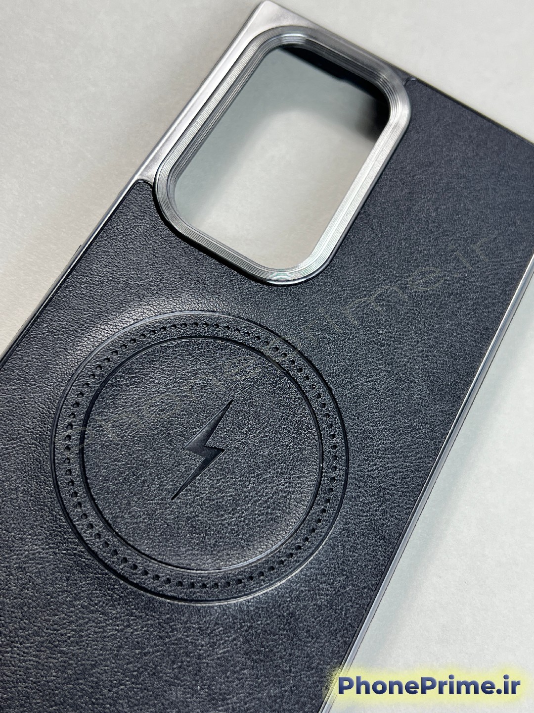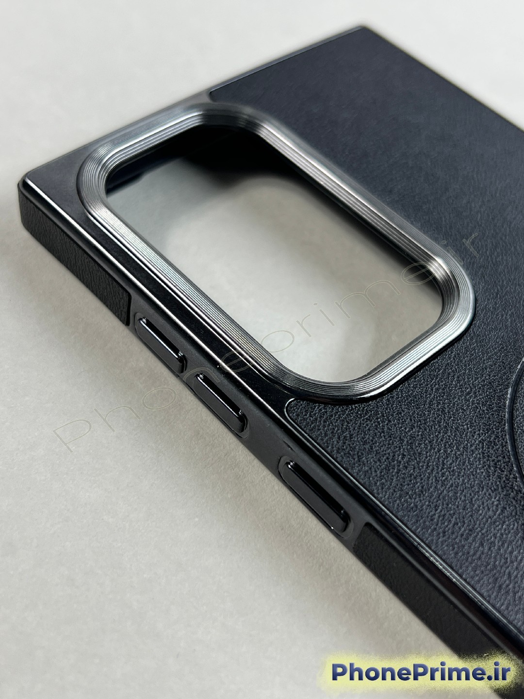 بافت چرمی باکیفیت و ضد لک: چرم به کار رفته در این قاب دارای بافت ظریفی است که علاوه بر ایجاد اصطکاک و جلوگیری از لیز خوردن گوشی، در برابر جذب اثر انگشت و لکههای چربی بسیار مقاوم است. رنگ مشکی عمیق این کاور با فریمهای تیتانیومی گوشی هماهنگی کامل دارد و به مرور زمان اصالت خود را حفظ میکند.