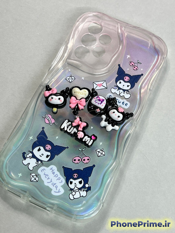 جزئیات ۳ بعدی برجسته: روی بدنه قاب، فیگورهای کوچک و برجستهای از شخصیت Kuromi به همراه المانهای تزئینی دیگر قرار گرفته است. این قطعات با چسبندگی بسیار بالا روی قاب فیکس شدهاند و حس لمس متفاوتی را به کاربر منتقل میکنند. چاپهای پسزمینه نیز با کیفیت فوقالعاده انجام شده که به مرور زمان دچار رنگپریدگی نمیشوند.