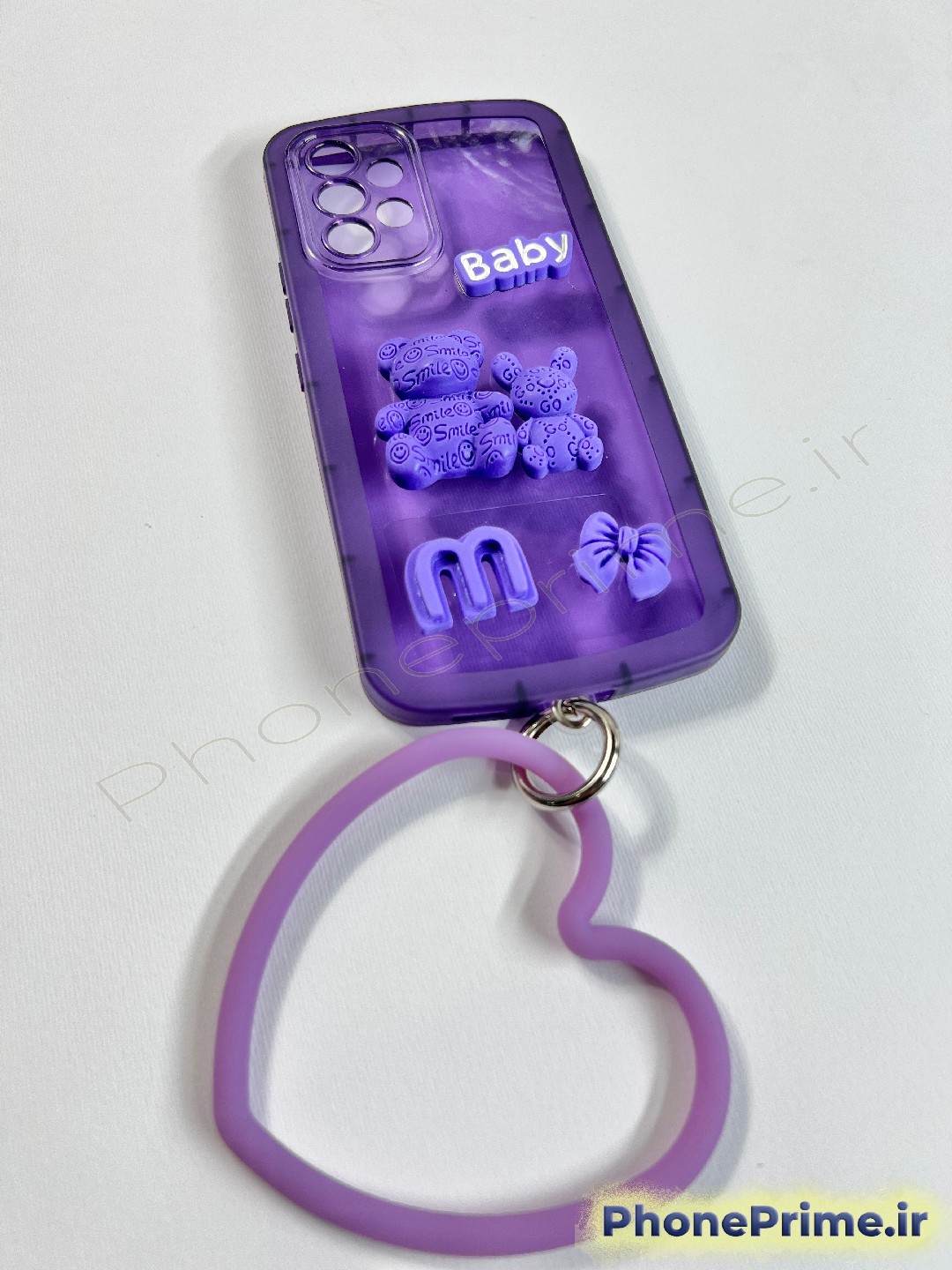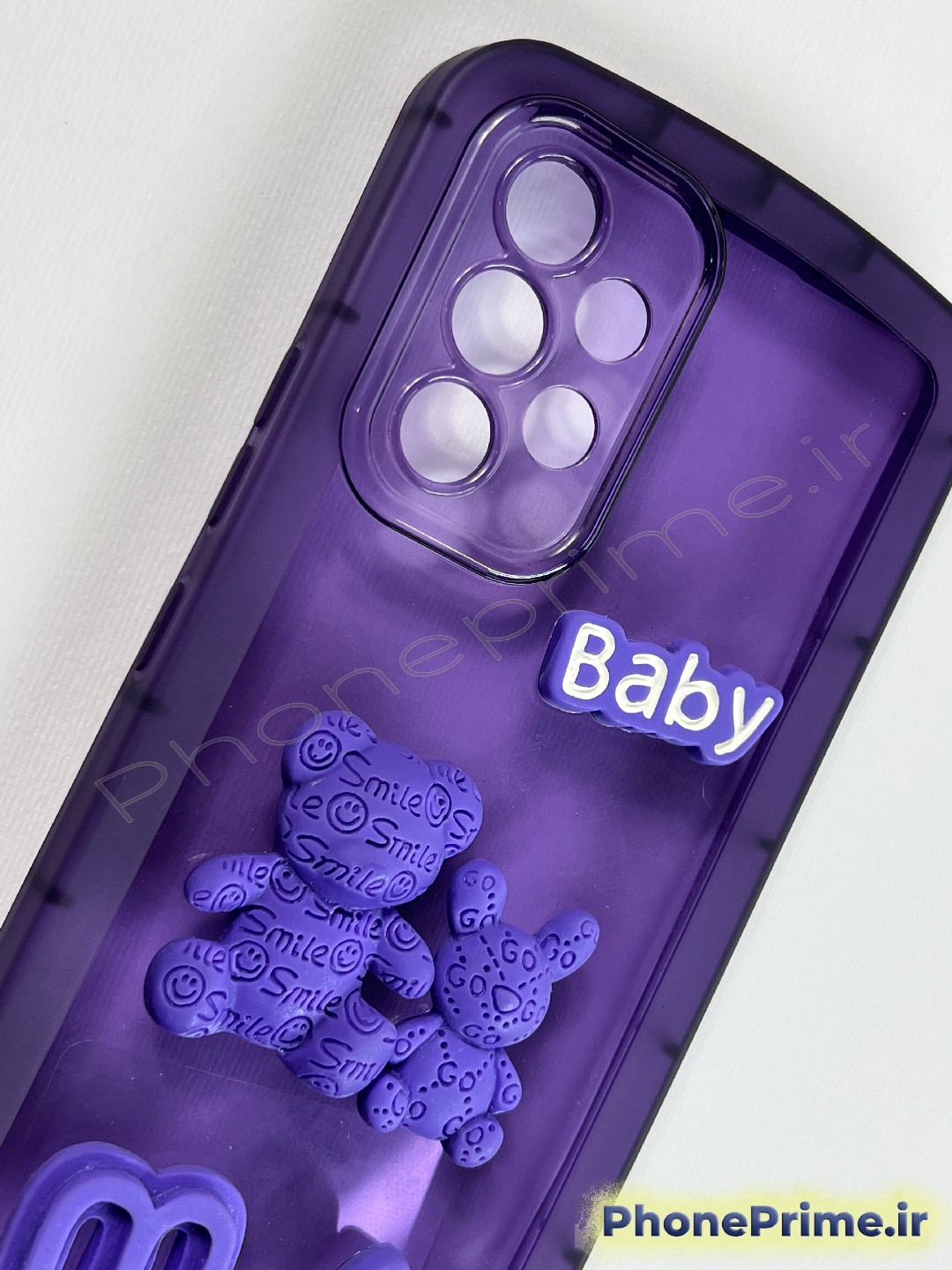 قاب سامسونگ A53 (Samsung A53) مدل فانتزی بنفش؛ دارای بدنه نیمهشفاف و مات با لمس بسیار لطیف. این قاب با عروسکهای ۳ بعدی برجسته (Bear & Bunny) و عبارت "Baby" تزئین شده و همراه با یک آویز دستی بزرگ به شکل قلب ارائه میشود که بسیار محکم و باکیفیت است. نقد و اقساط از ترب پی و اسنپ پی و دیجی پی.