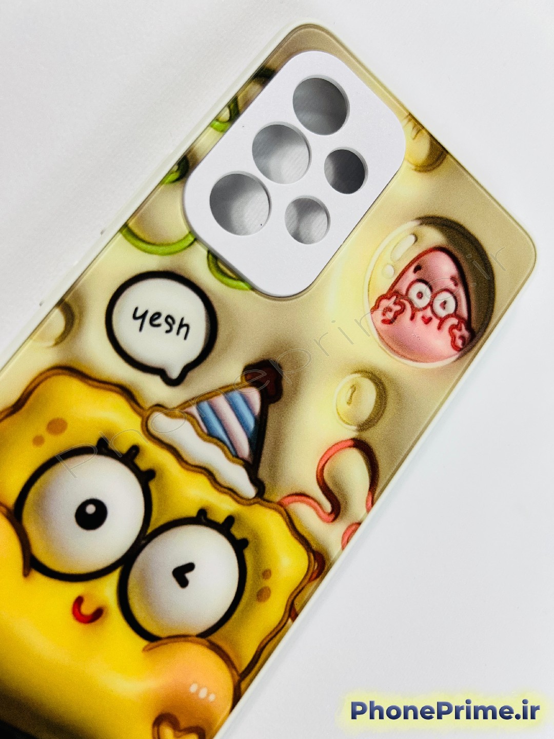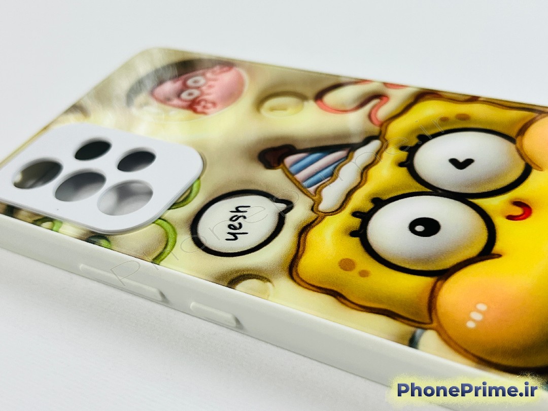طراحی برجسته ۳ بعدی (Puffy Design): ویژگی اصلی این قاب، طراحی برجسته و پفکی روی بدنه آن است. طرح باب اسفنجی با جزئیات دقیق به صورت سه بعدی (3D) طراحی شده که باعث میشود هنگام در دست گرفتن گوشی، حس بسیار متفاوتی را تجربه کنید. همچنین این برجستگیها به عنوان یک ضربهگیر کوچک عمل کرده و اصطکاک گوشی با دست را افزایش میدهند تا از سر خوردن آن جلوگیری کنند.