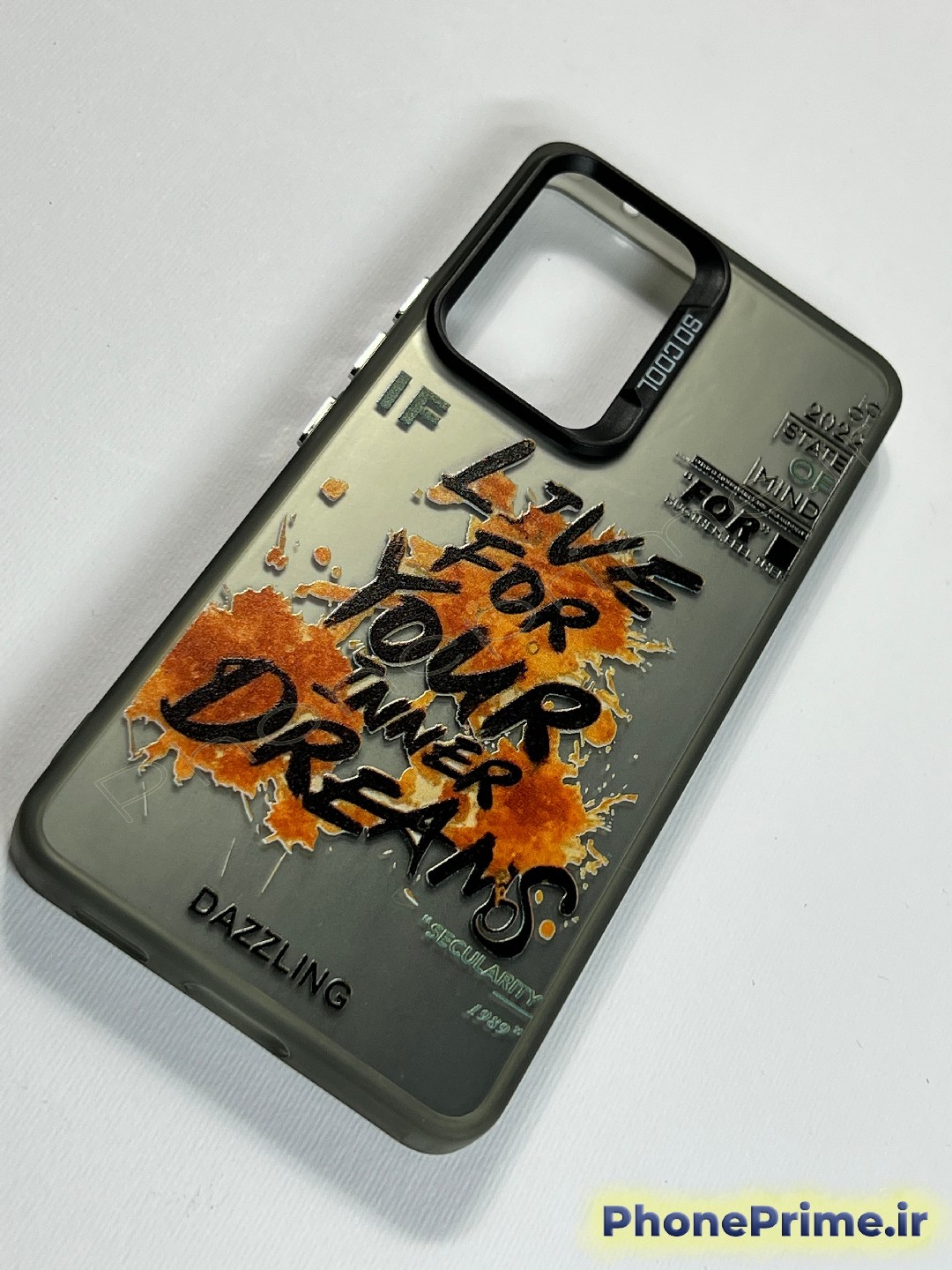 طراحی گرافیکی منحصر به فرد: طراحی گرافیکی این قاب ترکیبی از تایپوگرافی مدرن با جملات انگیزشی مانند "Live For Your Dreams" و لکههای هنری به سبک آبرنگ است که ظاهری بسیار جذاب و متفاوت به گوشی میدهد.