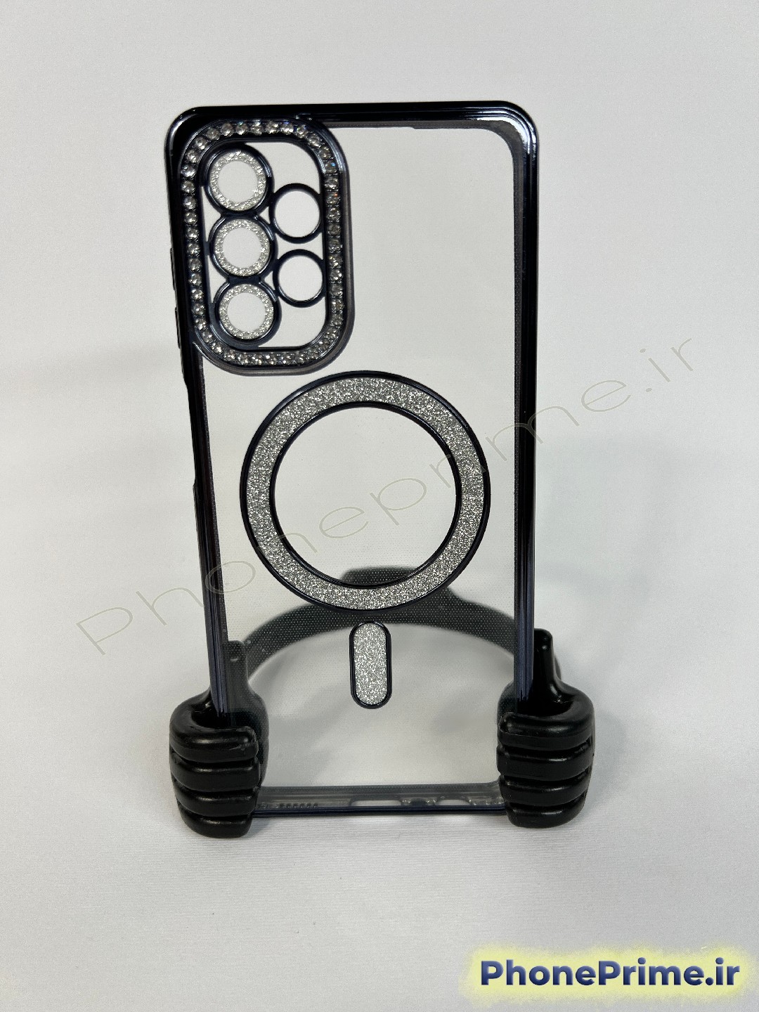 رینگ مگنتی و کارایی: در پشت قاب، یک رینگ با طراحی براق تعبیه شده که علاوه بر زیبایی، به حفظ تعادل گوشی در دست کمک کرده و به استایل مگسیف (MagSafe) گوشیهای لوکس نزدیک است. بدنه شفاف قاب نیز باعث میشود لوگوی سامسونگ و رنگ اصلی گوشی شما به زیبایی نمایان باشد.