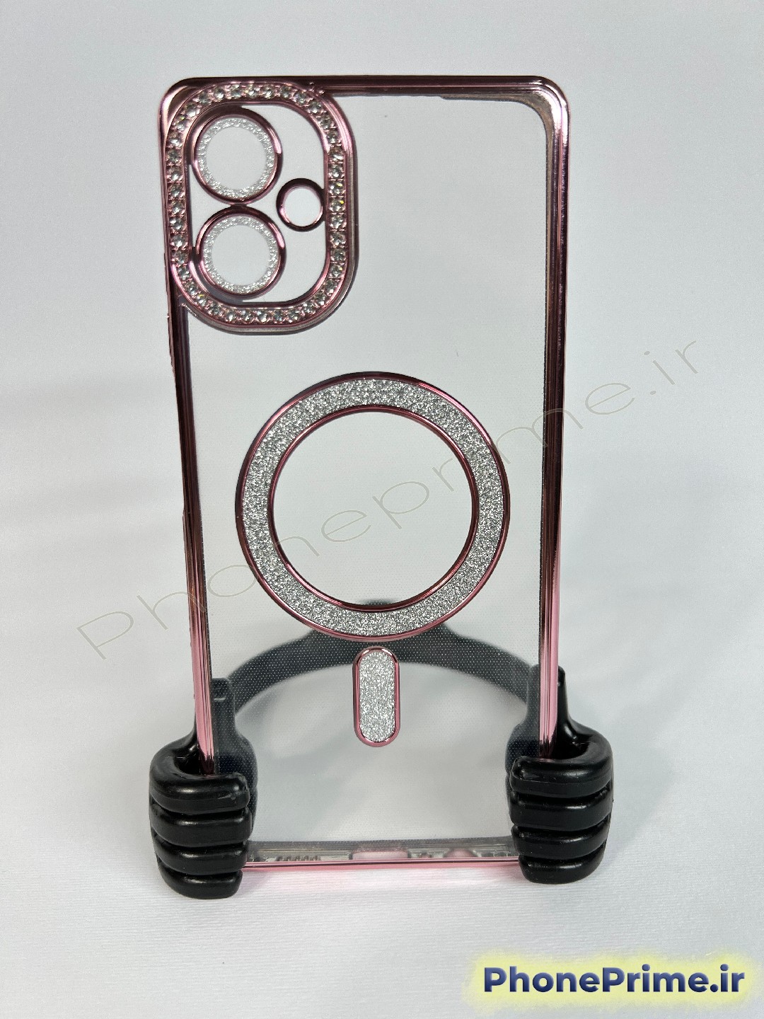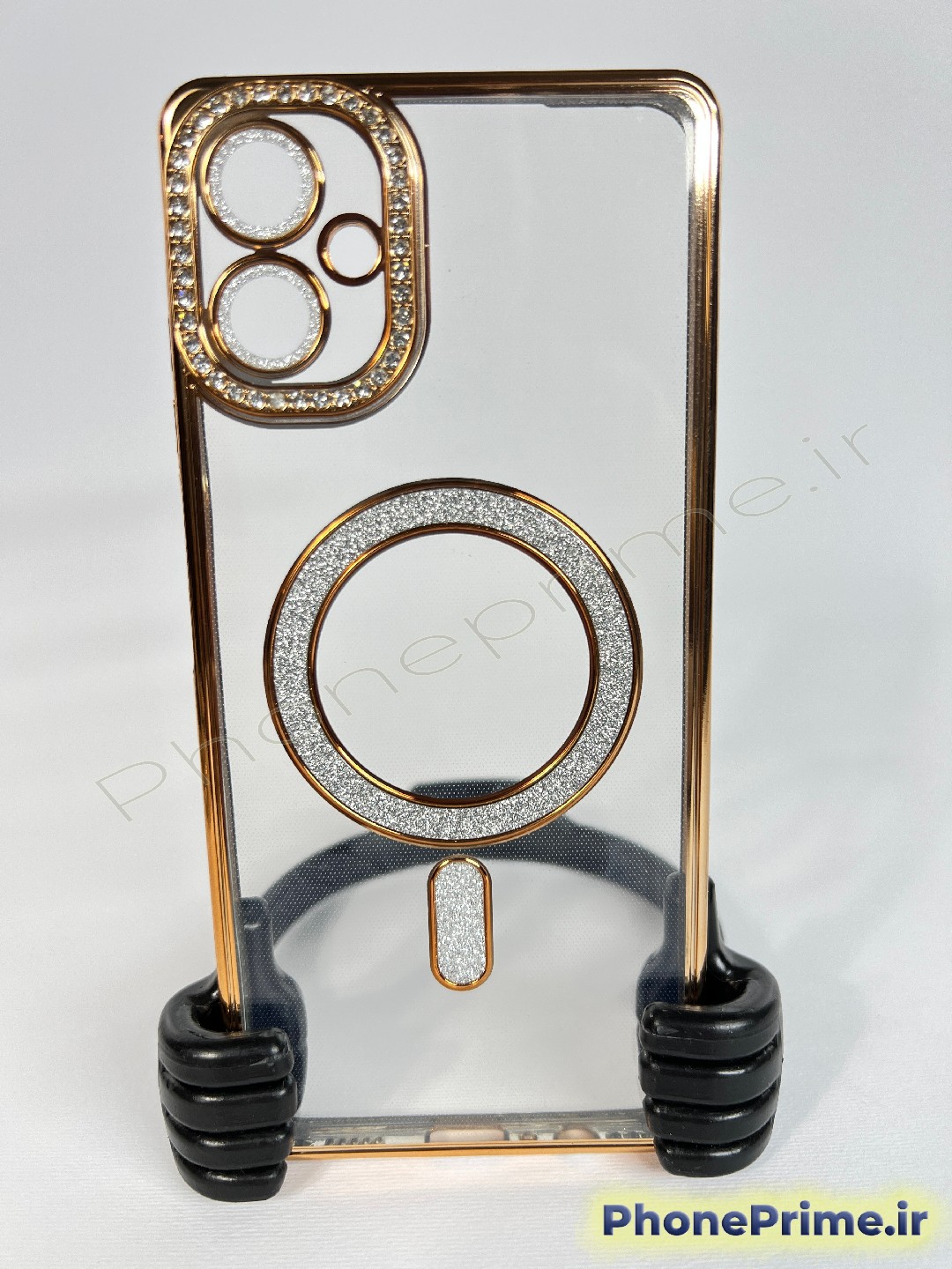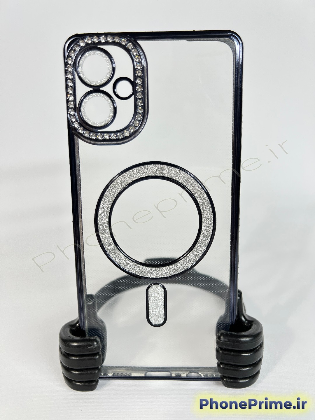 رینگ مگنتی کاربردی: رینگ تعبیه شده در پشت قاب با پوشش اکلیلی/نگینی، علاوه بر زیبایی، به عنوان یک المان مگنتی عمل کرده و حس لوکس بودن گوشیهای خاص را به کاربر منتقل میکند. بدنه شفاف قاب نیز از زیبایی اصلی طراحی A06 محافظت میکند بدون آنکه آن را پنهان کند.
