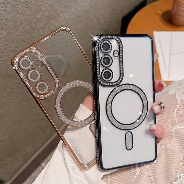 رینگ مگنتی کاربردی: رینگ تعبیه شده در پشت قاب با پوشش اکلیلی/نگینی، علاوه بر زیبایی، به عنوان یک المان مگنتی عمل کرده و به استایل مگسیف (MagSafe) گوشیهای لوکس نزدیک است. بدنه شفاف قاب نیز از زیبایی اصلی طراحی A54 محافظت میکند بدون آنکه آن را پنهان کند.