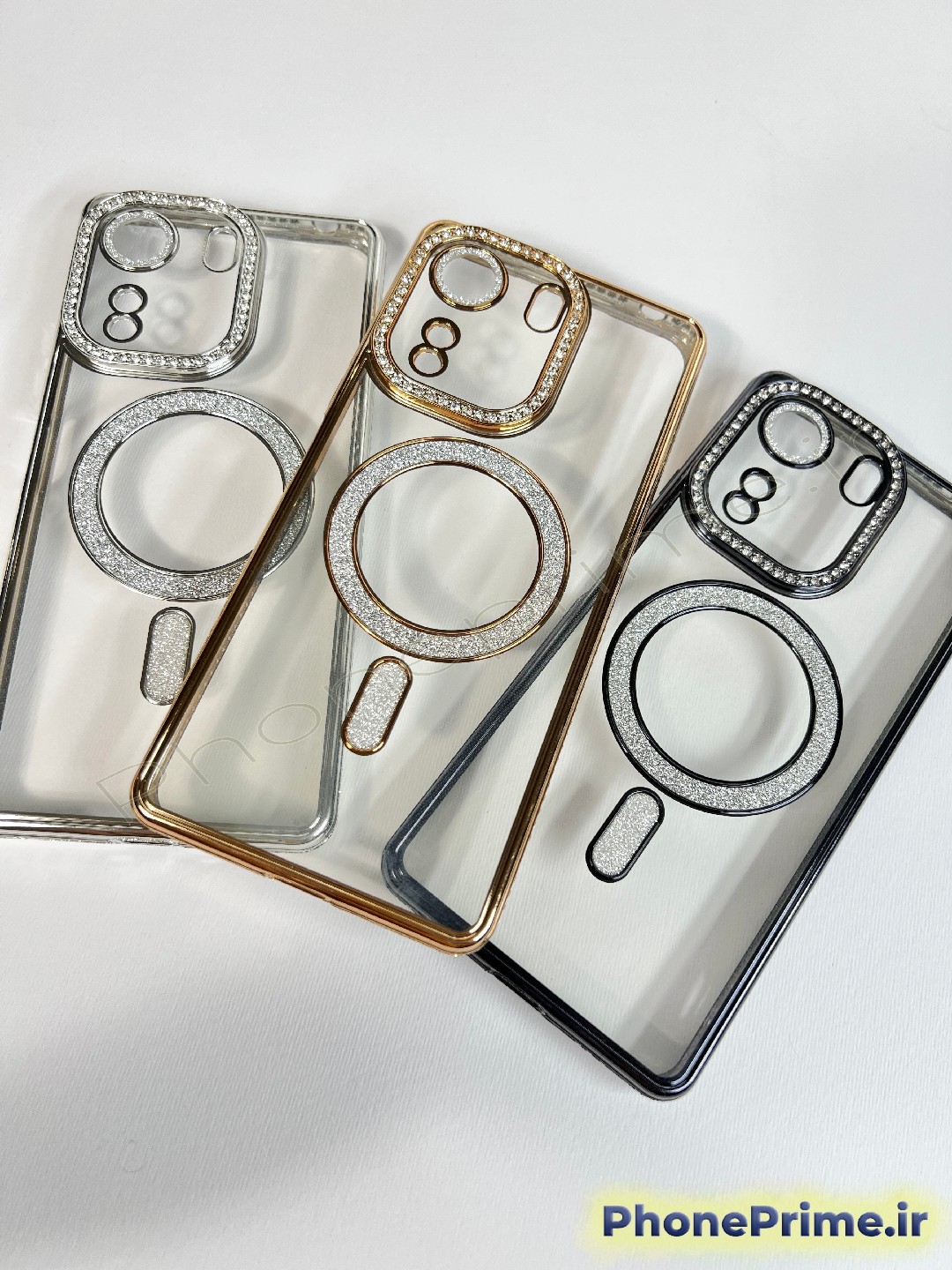 انتخاب رنگ متناسب با سلیقه: این قاب در رنگهای متالیک درخشان (طلایی، مشکی، آبی و...) عرضه میشود. شما میتوانید از بخش انتخاب رنگ، مناسبترین گزینه را برای ست کردن با رنگ گوشی Redmi 13C خود یا لباس مجلسیتان انتخاب کنید. نگینهای اتمی دور فریم، درخشش بینظیری دارند که گوشی شما را در نور مجالس متمایز میکند.