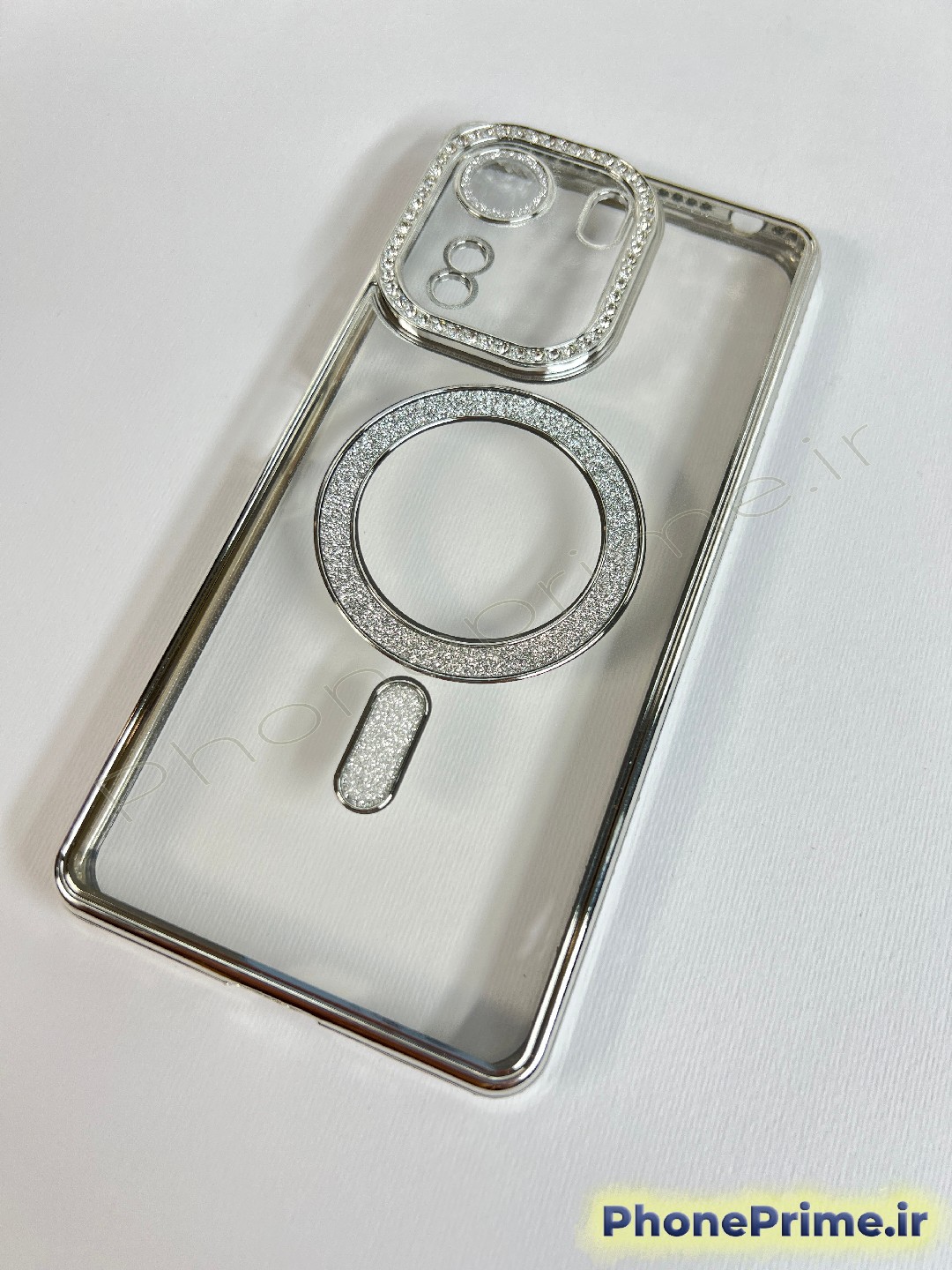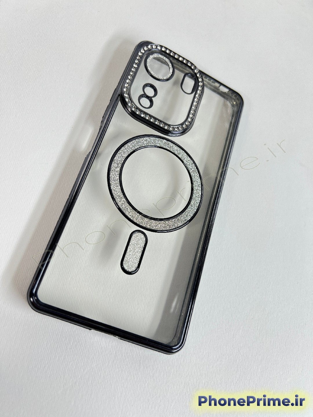 رینگ مگنتی کاربردی: رینگ تعبیه شده در پشت قاب با پوشش اکلیلی/نگینی، علاوه بر زیبایی، به عنوان یک المان مگنتی عمل کرده و به استایل مگسیف (MagSafe) گوشیهای لوکس نزدیک است. بدنه شفاف قاب نیز از زیبایی اصلی طراحی Redmi 13C محافظت میکند بدون آنکه آن را پنهان کند.