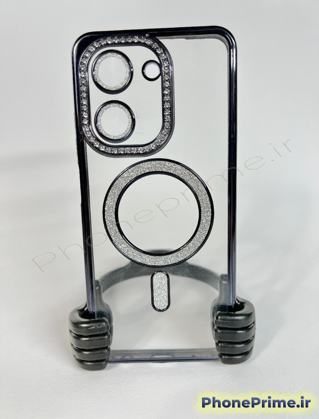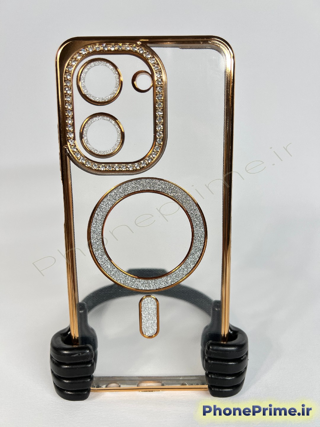 رینگ مگنتی کاربردی: رینگ تعبیه شده در پشت قاب با پوشش اکلیلی/نگینی، علاوه بر زیبایی، به عنوان یک المان مگنتی عمل کرده و به استایل مگسیف (MagSafe) گوشیهای لوکس نزدیک است. بدنه شفاف قاب نیز از زیبایی اصلی طراحی Redmi 15C محافظت میکند بدون آنکه آن را پنهان کند.