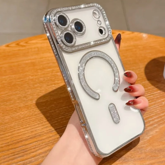 رینگ مگنتی کاربردی (MagSafe): رینگ تعبیه شده در پشت قاب با پوشش اکلیلی/نگینی، علاوه بر زیبایی، به عنوان یک المان مگنتی عمل کرده و با استایل مگسیف (MagSafe) گوشیهای آیفون کاملاً سازگار است. بدنه شفاف قاب نیز از زیبایی اصلی طراحی آیفون ۱۷ پرو مکس محافظت میکند بدون آنکه آن را پنهان کند.