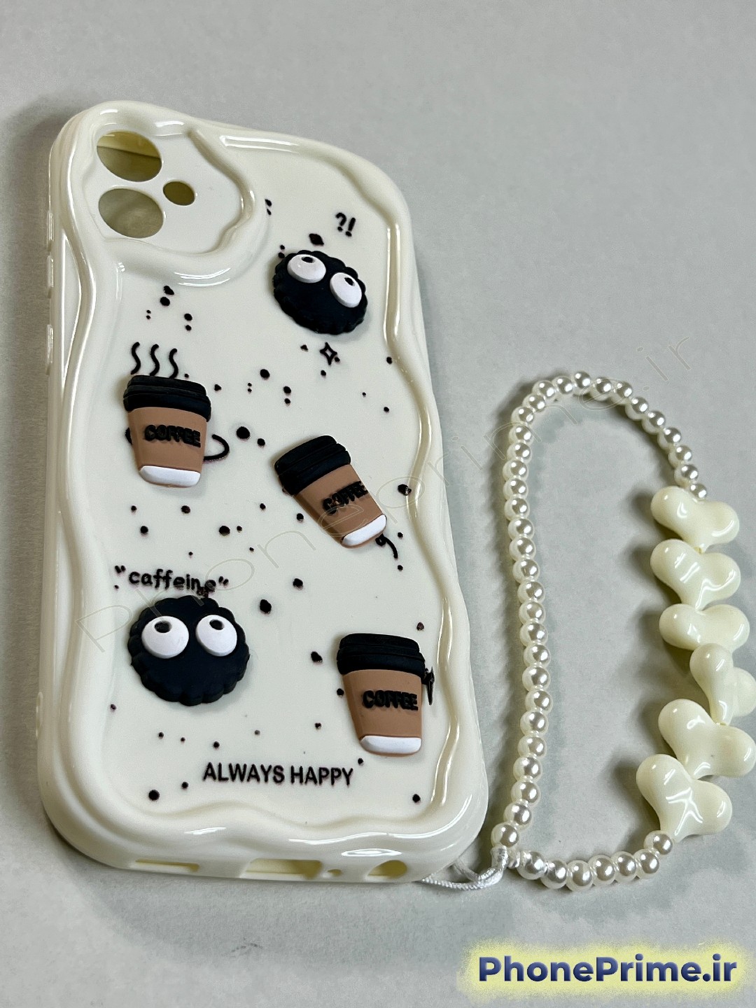 قاب سامسونگ A05 مدل فانتزی آویزدار طرح قهوه و مروارید | بدنه سفید با عروسکهای برجسته (نقد و اقساط)