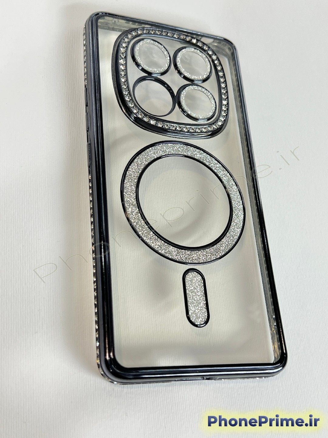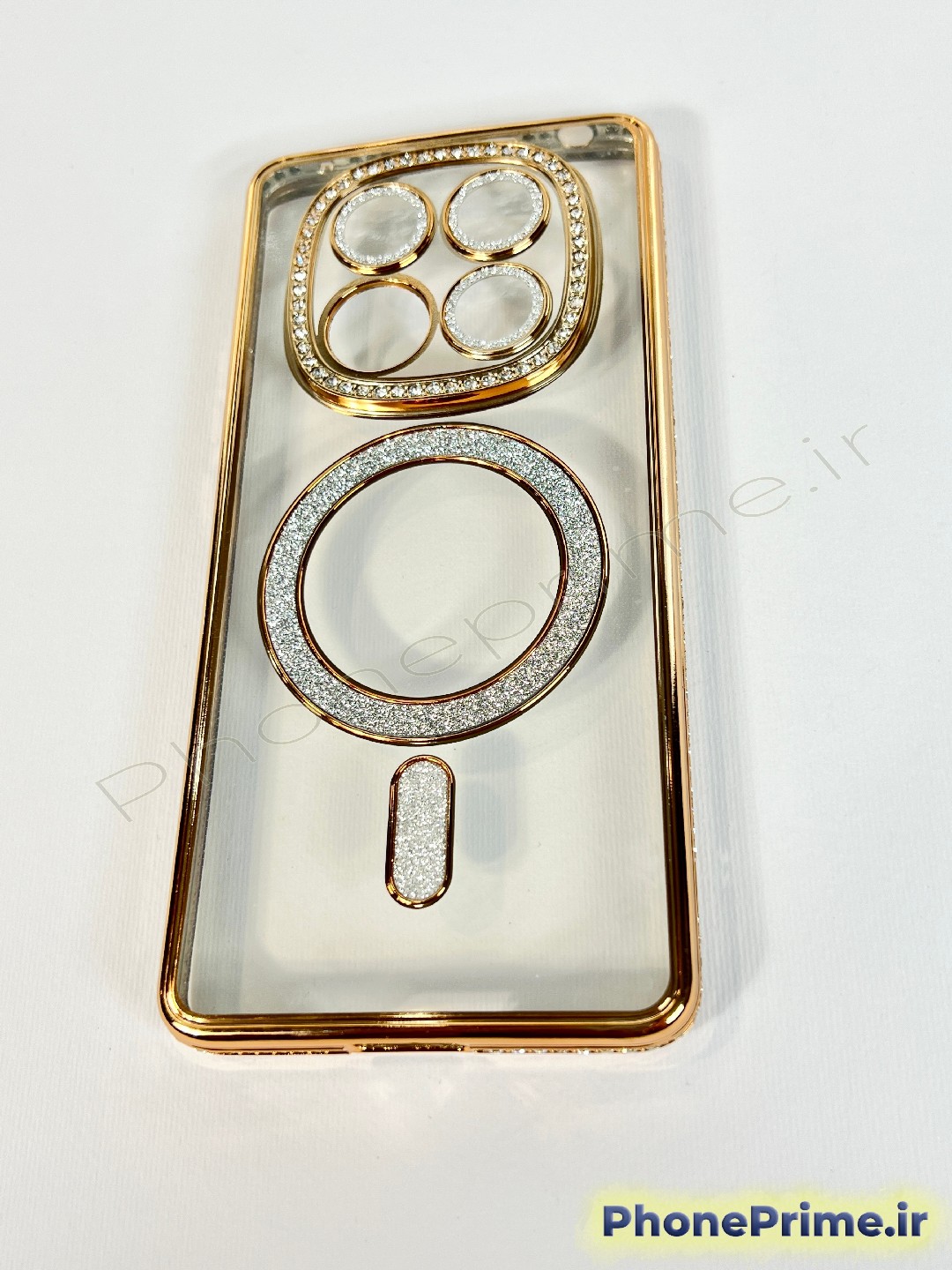 رینگ مگنتی کاربردی: رینگ تعبیه شده در پشت قاب با پوشش اکلیلی/نگینی، علاوه بر زیبایی، به عنوان یک المان مگنتی عمل کرده و به استایل مگسیف (MagSafe) گوشیهای لوکس نزدیک است. بدنه شفاف قاب نیز از زیبایی اصلی طراحی Redmi Note 15 4G محافظت میکند بدون آنکه آن را پنهان کند.