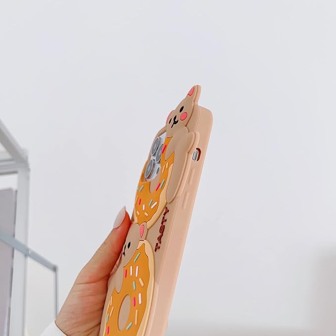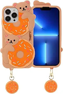 کاور عروسکی طرح دونات مناسب برای گوشی های آیفون دارای آویز با رنگ ثابت و ضربه گیری فوق العاده بالا ، بسیار خوش دست و شیک